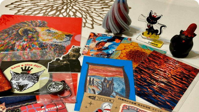 この写真は5月にビッグサイトで開催されたデザインフェスタの購入品です。猫が大好きなため、猫グッズに目がなく、気付けば結構量を買い漁っていました笑